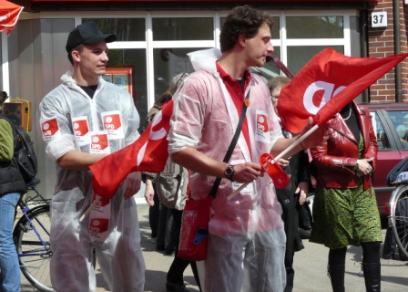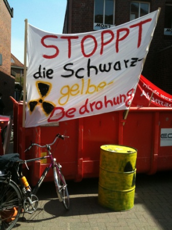 Die Jusos zogen mit Atomfässern durch Geesthacht.