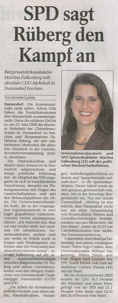Am Freitag den 26.Oktober hat der SPD Ortsverein Dassendorf seine Kandidaten für die kommende Kommunalwahl im Mai 2008 aufgestellt.