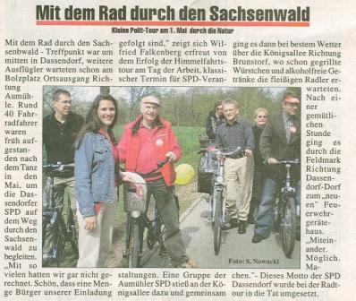 Rund 40 Fahrradfahrer waren früh aufgestanden nach dem Tanz in den Mai, um die Dassendorfer SPD auf den Weg durch den Sachsenwald zu begleiten.