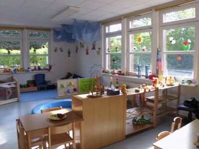 Zum August letzten Jahres wurde ein Gruppenraum mit Ruhezone und Sanitärbereich für die jüngsten Kinder zwischen erstem und drittem Geburtstag umgestaltet. Sie haben auch ihren eigenen Außenbereich erhalten. Ein direkter Zugang vom Gruppenraum aus soll noch in diesem Jahr geschaffen werden. Eine Markise über Fenster und Tür wird für Schatten sorgen.